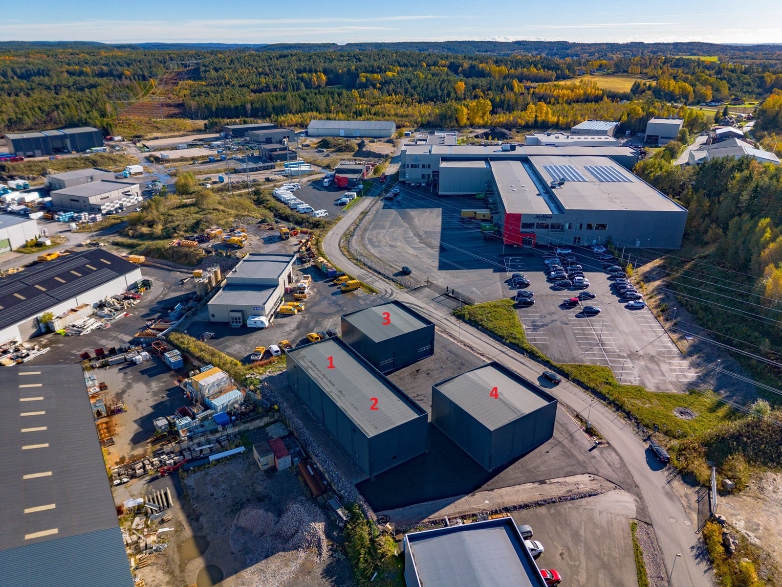 Det er 3 nyoppførte bygg på eiendommen som kan leies ut hver for seg eller samlet. Bygg 1 og 2 er utleid.